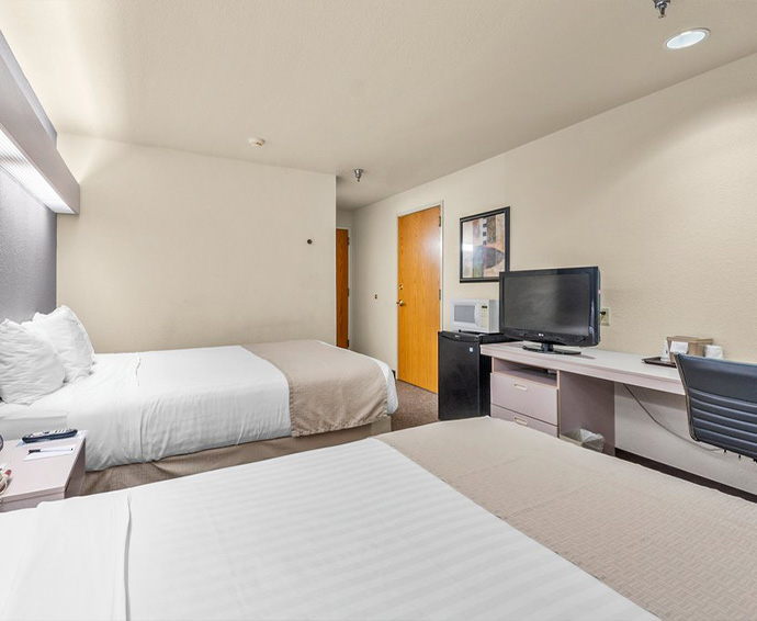 Free WiFi, free continental breakfast, roll-in shower, shower grab bars, adjustable hand-held shower wand, portable shower seat, raised toilet seat with grab bars, bedroom is wheelchair accessible, closet rods at wheelchair height,mini-refrigerator, microwave, air conditioning, HDTV, alarm clock, desk